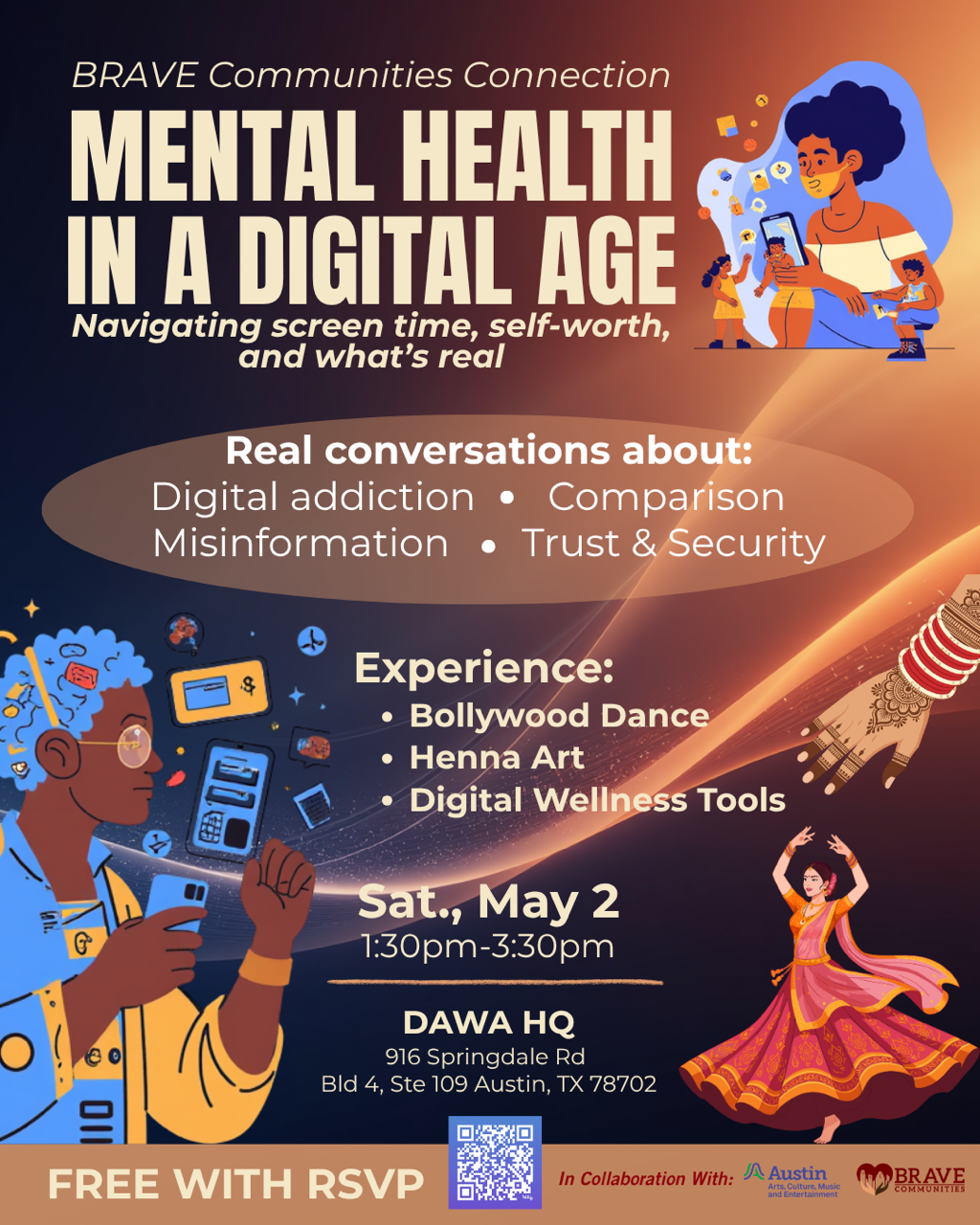 Join BRAVE Communities for an open, honest, and empowering conversation led by subject matter experts and local organizations working at the intersection of mental health, technology, and community wellbeing. This event is for everyone — parents, young people, educators, neighbors, and anyone who has ever felt overwhelmed by the digital world.